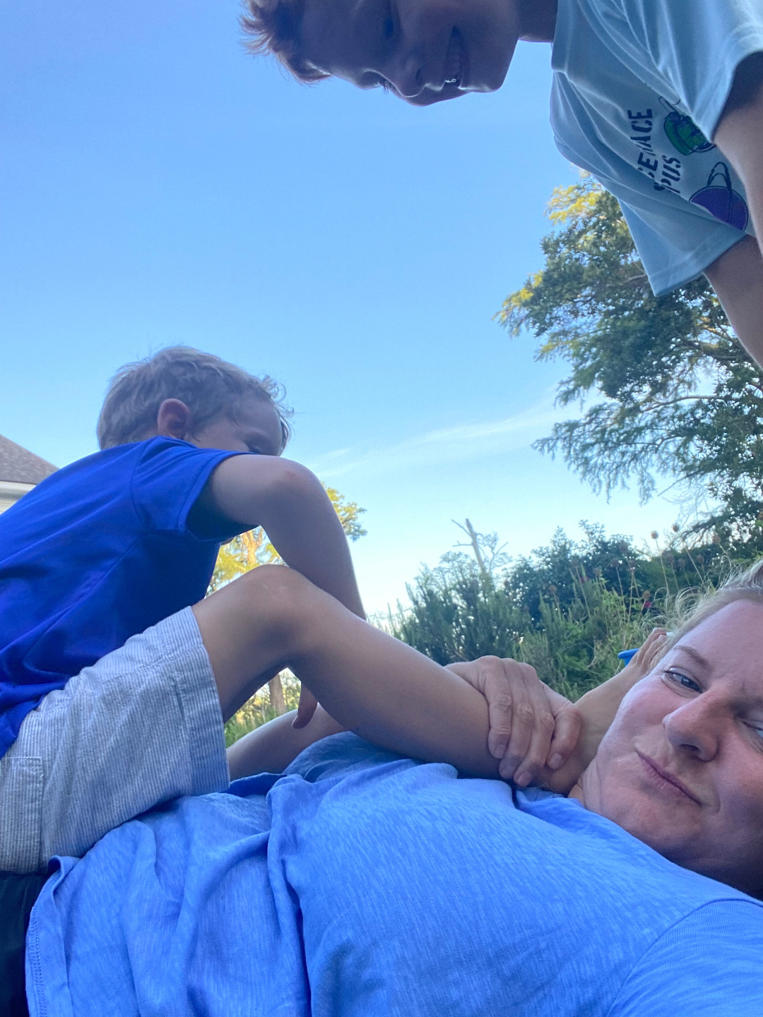 Thirty seconds after lying down on the grass to decompress after teaching...the kids found me.Ā